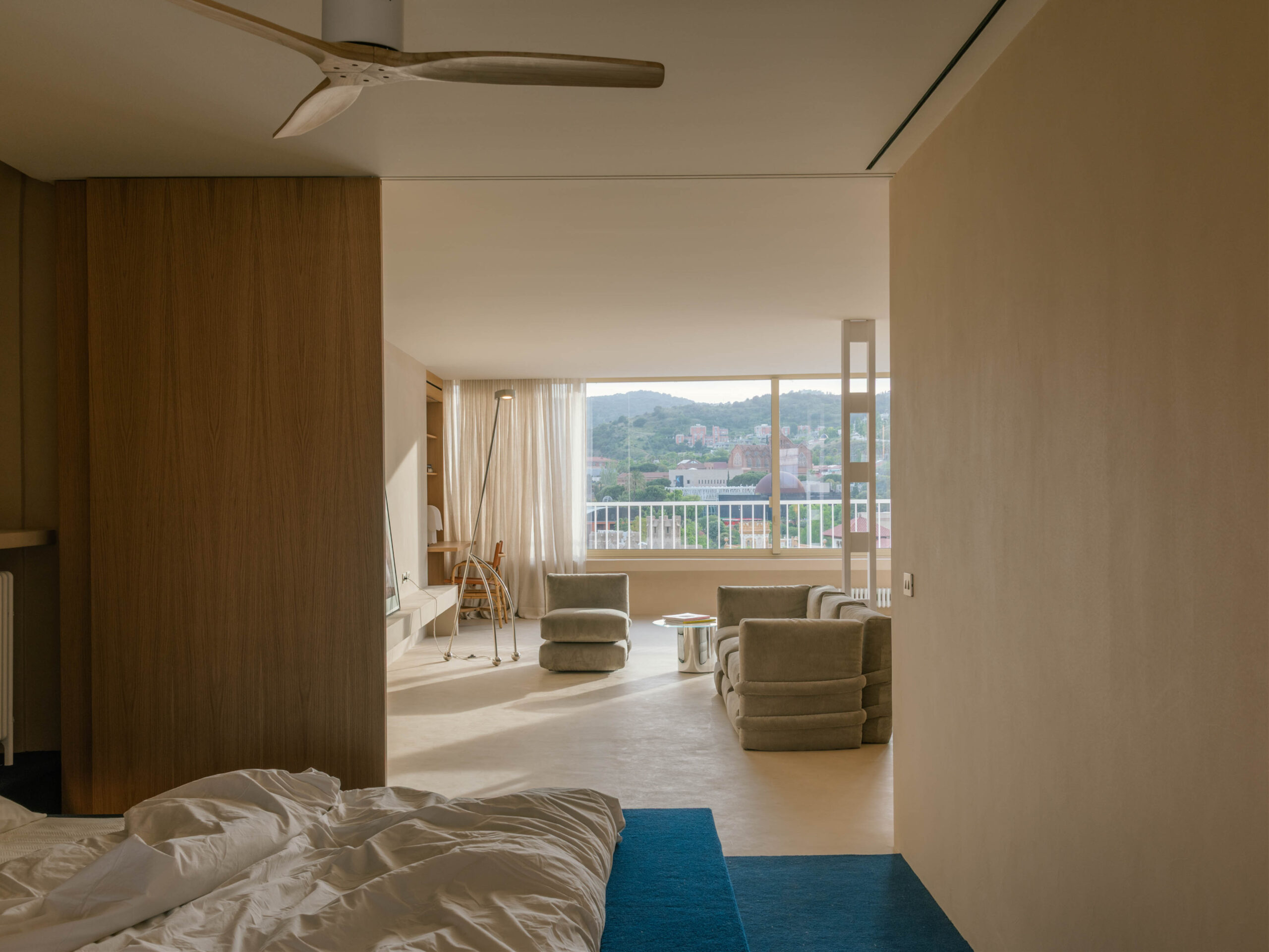 Located on the top floor of a building at the point where the city begins its ascent towards Avinguda Tibidabo, the home enjoys a privileged position with an uncommon view of Barcelona, stretching from Mount Collserola across the city and towards the sea.