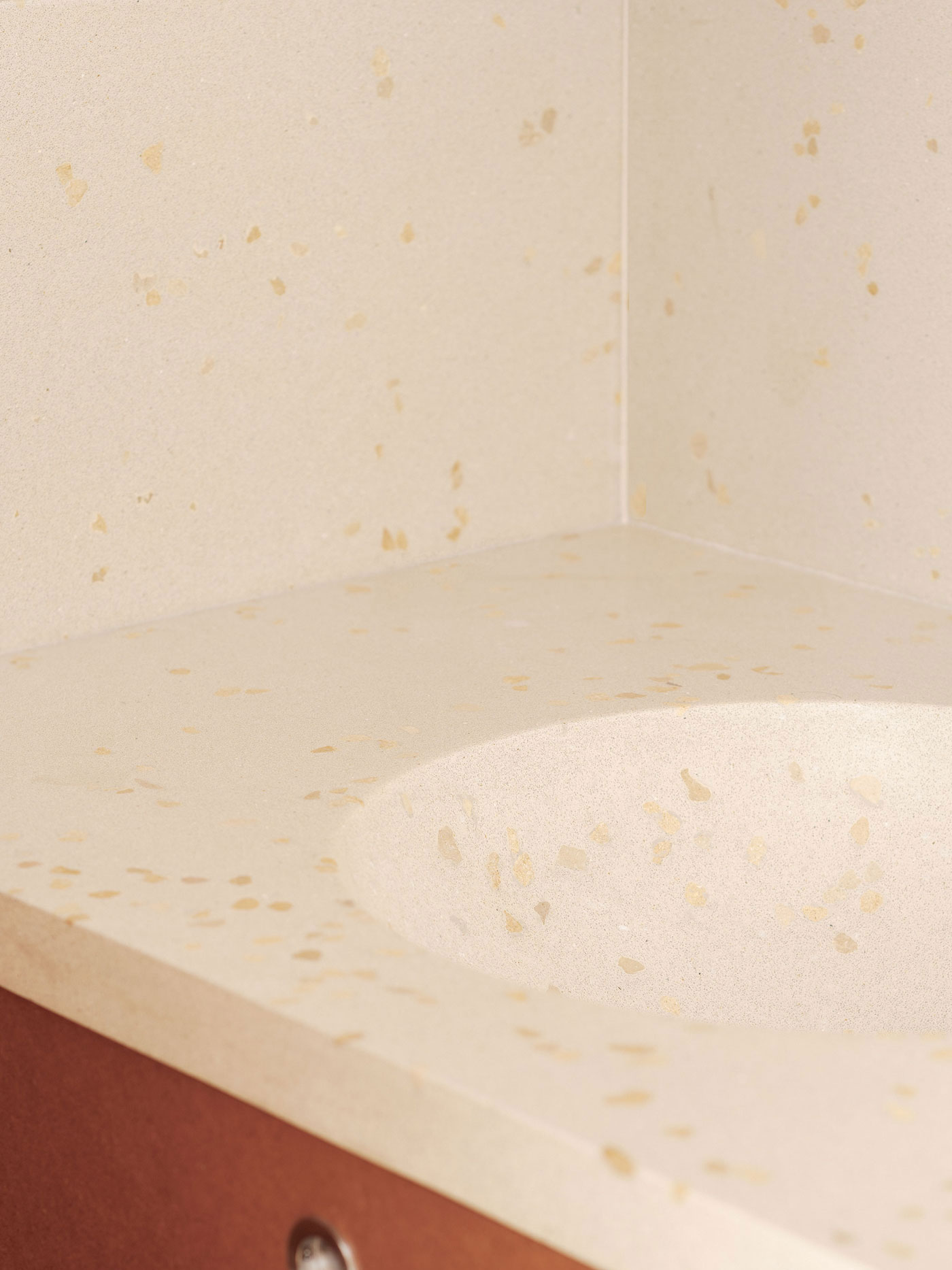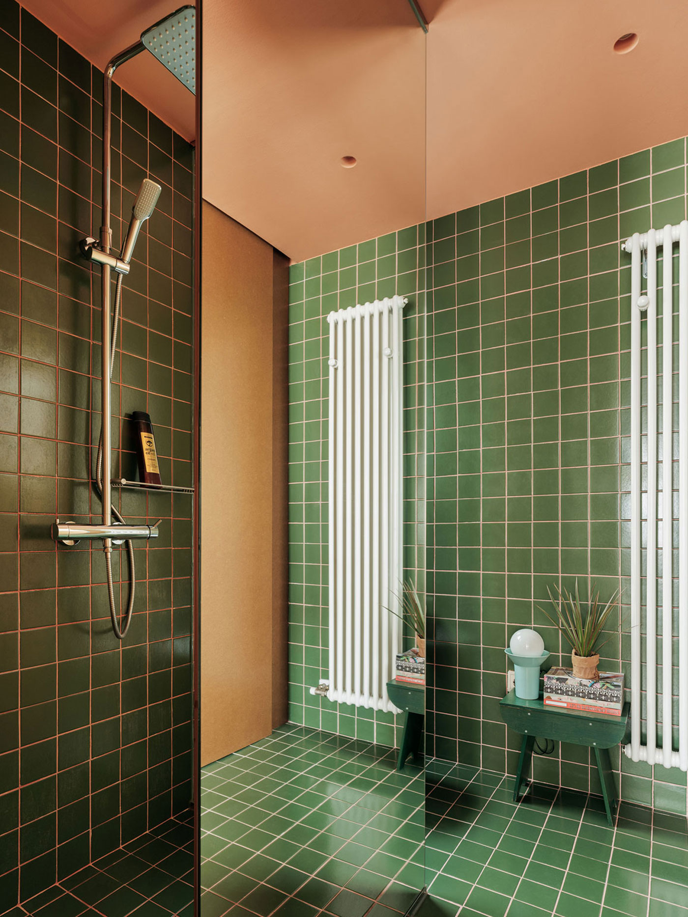 The bathroom was repositioned with dual entrances—one from the master bedroom and another from the hallway—to enhance accessibility. The washbasin was placed outside to serve both the public areas and the guest room. Mirrors were introduced to visually expand the space and bring natural light into the corridor. We selected exposed terrazzo and MDF for textural contrast, while the industrial oak flooring adds warmth and meets the client’s request for a barefoot-friendly home.