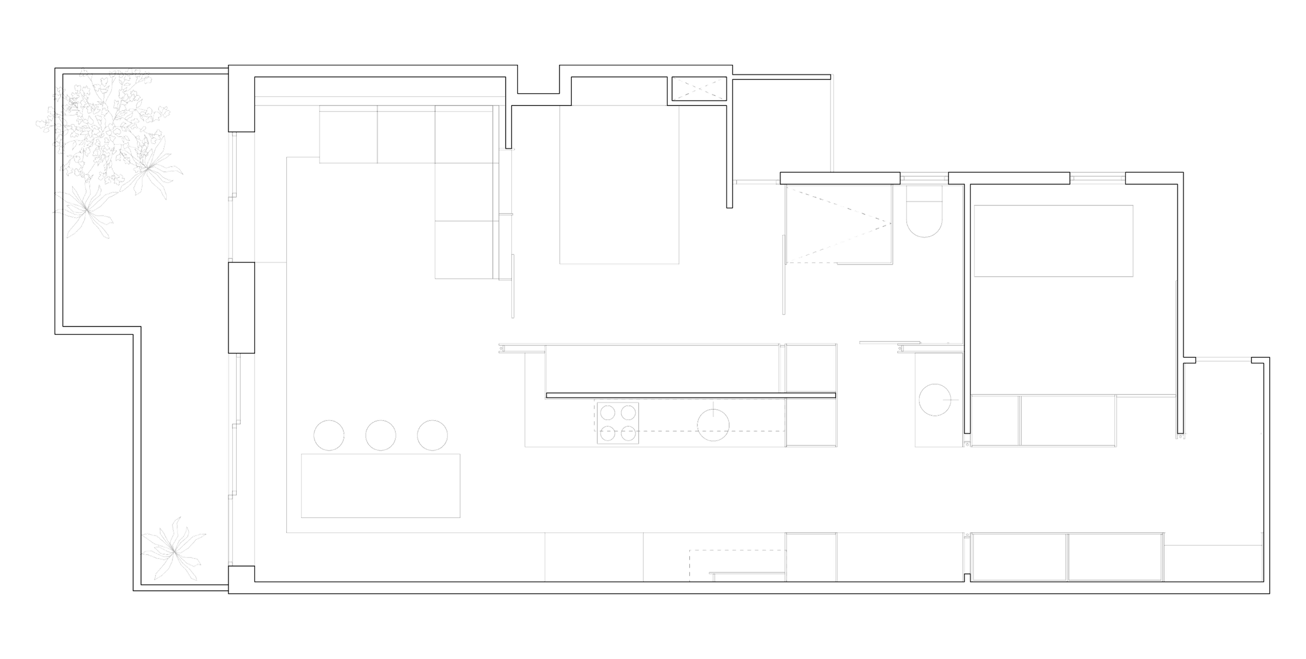 When we first visited David’s flat, we noticed that the layout presented a clear opportunity for improvement. The hallway consumed too much space, and the living room was isolated from the terrace. Our aim was to create a more fluid, open environment that connected the living areas with the outdoors and to accommodate two bedrooms.