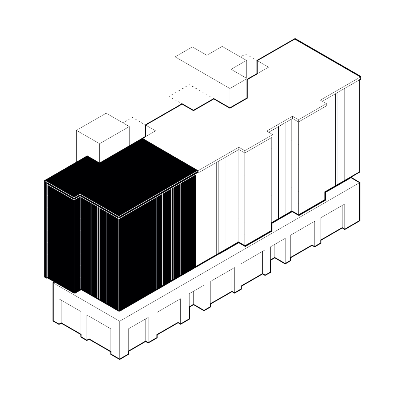 A key challenge was re-thinking the outdated staircase and elevator, which no longer met current regulations. By repositioning and reshaping their corners, we reclaimed valuable interior space and created a diagonal axis that improved both compliance and flexibility—preparing the building for its new function as office space.