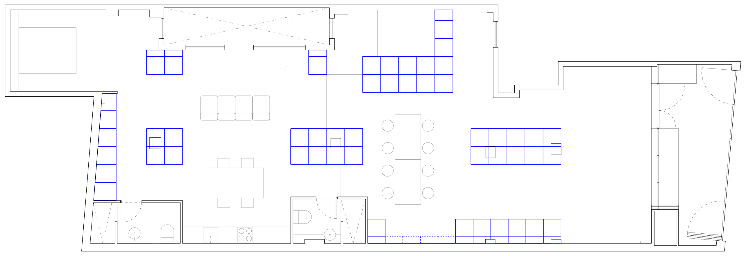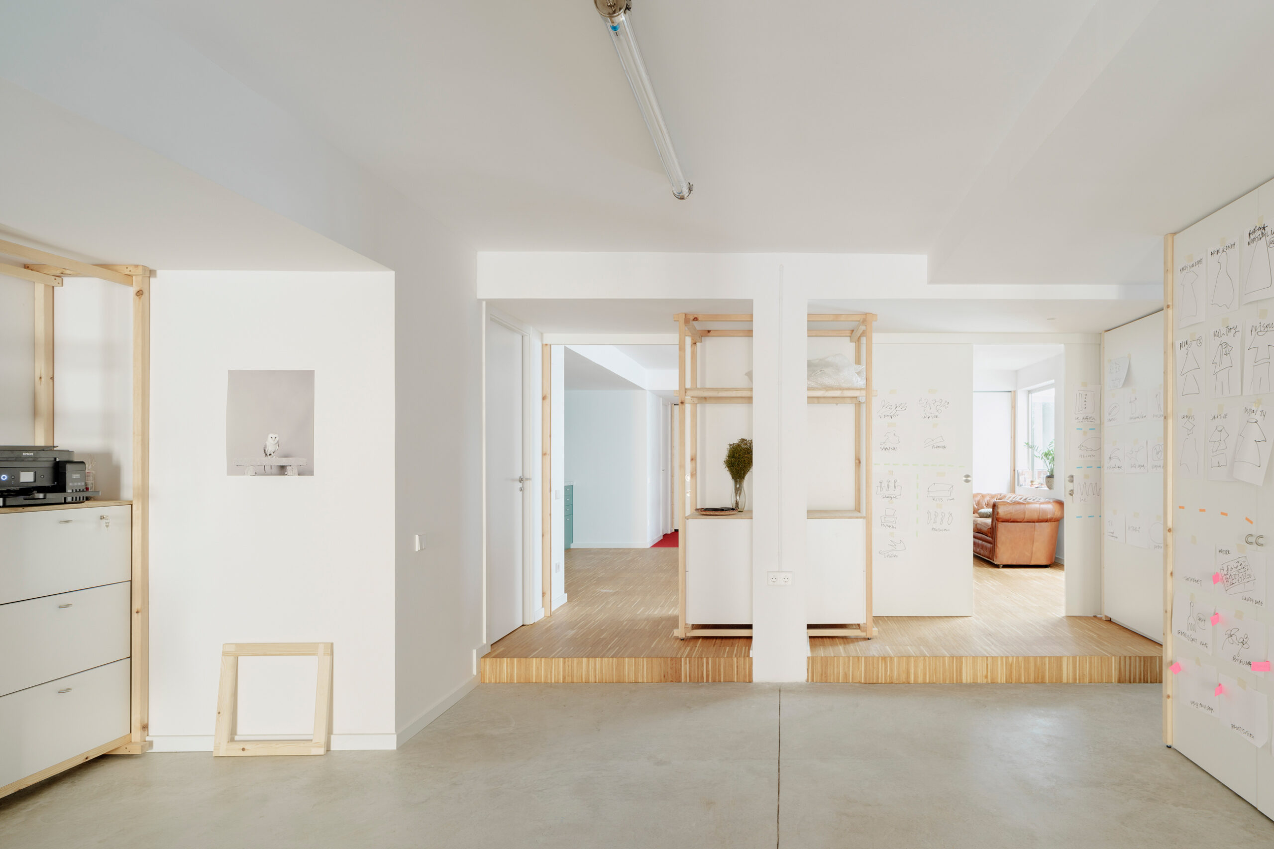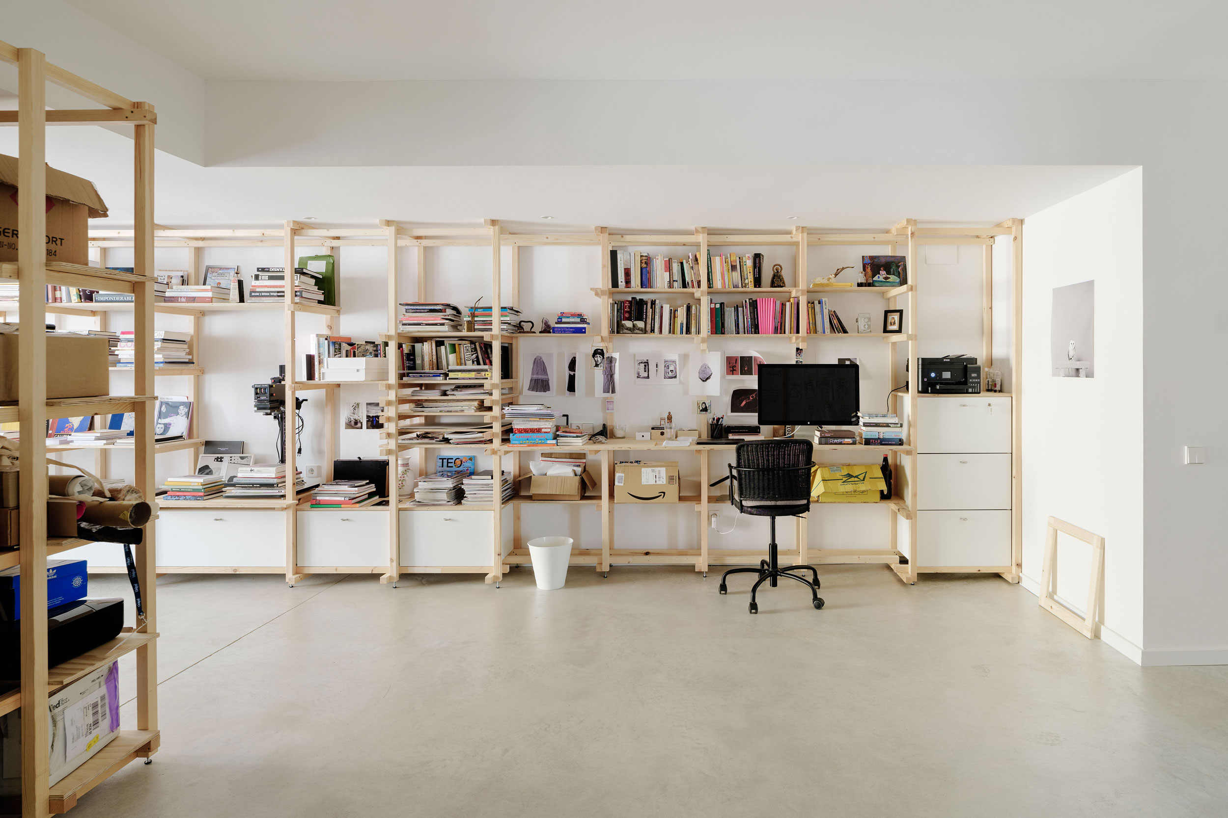 Within a constrained budget, we transformed Laia’s garage into a functional home and photography studio. Upon levelling the floor, we designed a customizable wood shelving system that organized the space into distinct areas. This strategy allowed us to open up the space and minimize divisions to create a luminous space.